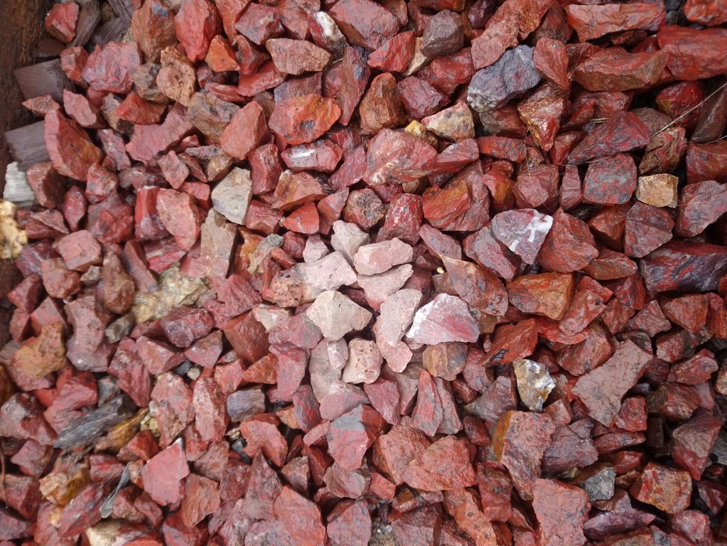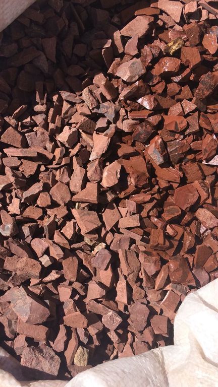 В наличии яшма Сургучная, яшма пейзажная, яшма мясная (с белой прожилкой), разные фракции от мелкой крошки до крупных глыб.