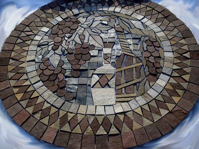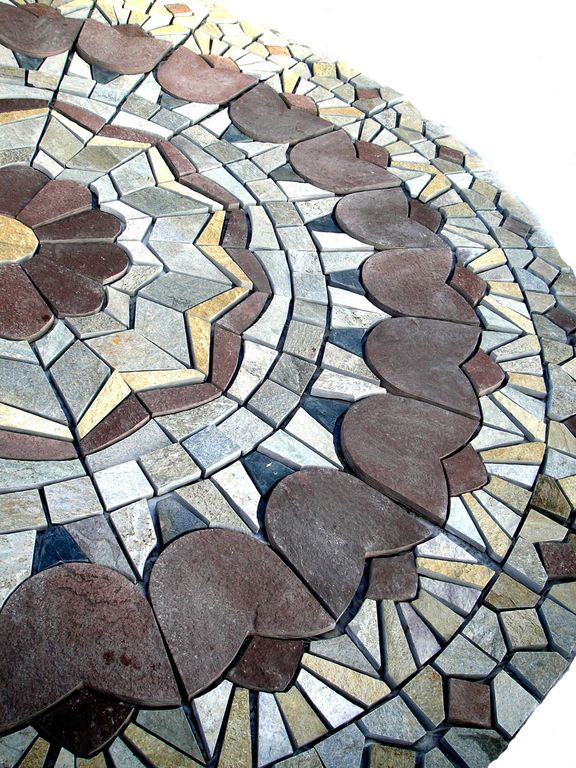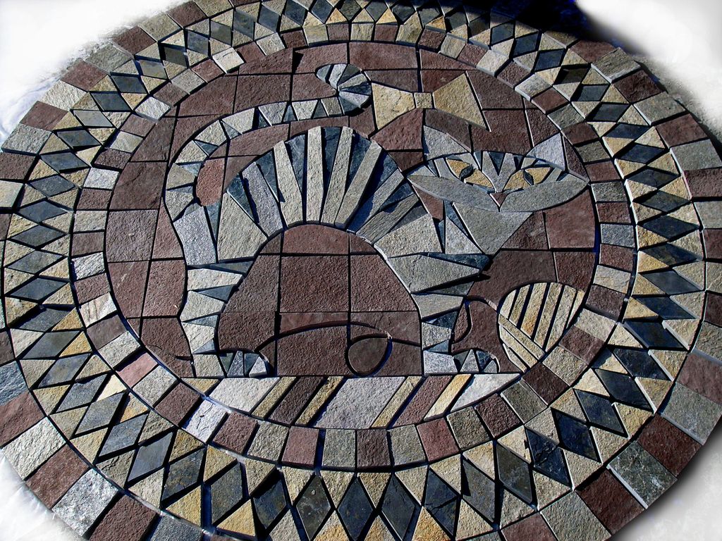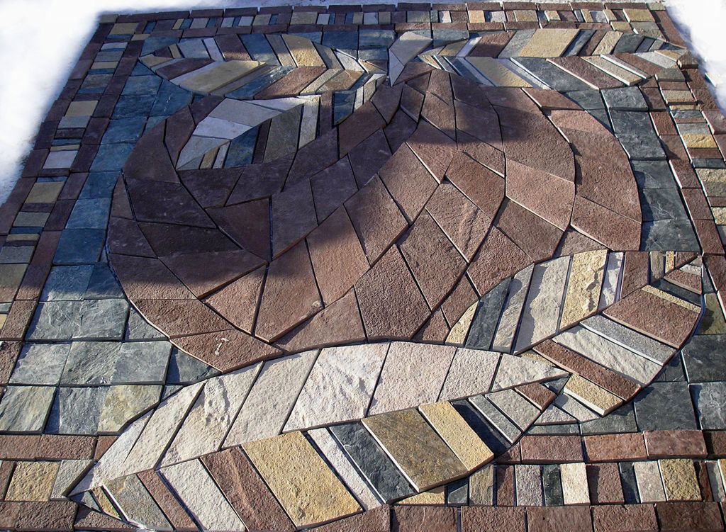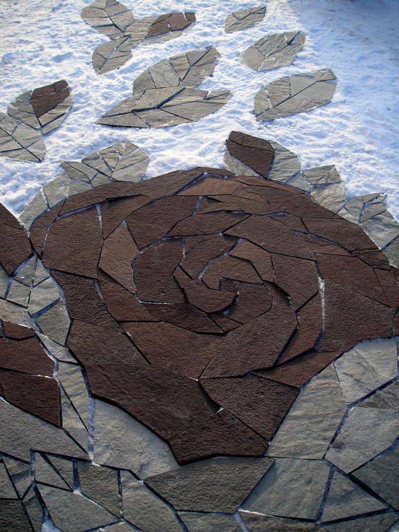 Панно из натурального природного камня, использованы плитняки: кварцит серый, лемезит, кварцит желтый (златолит)