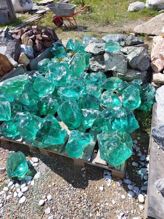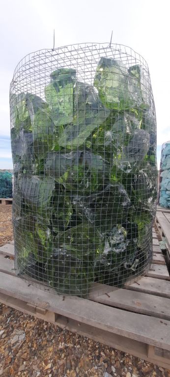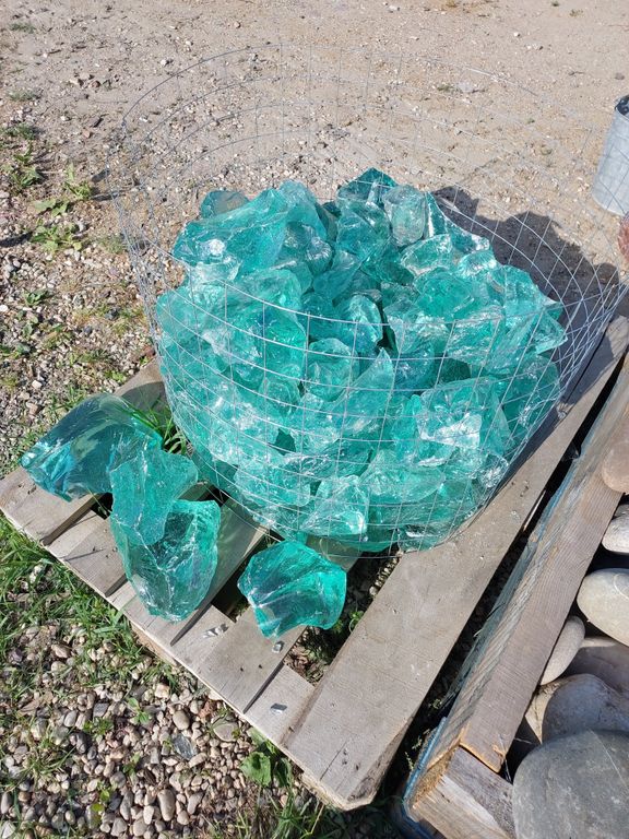 Кусковое стекло заводского изготовления, применяется для устройства габионов, декоративных инсталляций и других ландшафтных идей